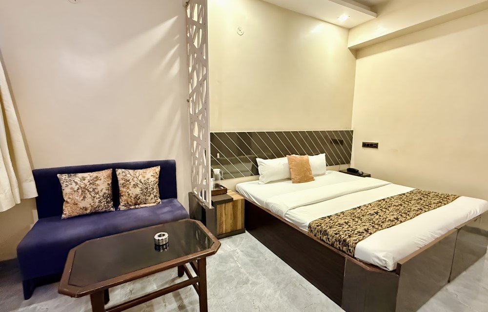 The Deluxe Ac Rooms are well suited for solo travelers, business guests, couples, and small families who want a dependable hotel stay in Indore. Guests searching for affordable hotel rooms, budget deluxe ac rooms, or comfortable hotel accommodation near Dhar Kothi Colony often choose this category. Its neutral design makes it adaptable for different travel purposes, whether you are visiting nearby offices, attending family events, or passing through the city.